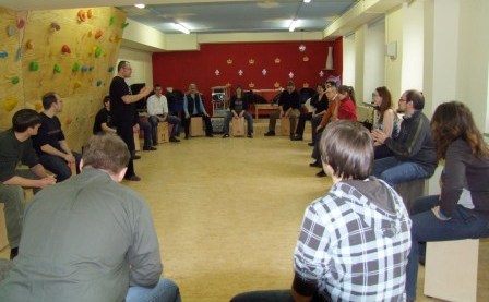 das erweiterte Cajonspiel herangeführt, damit Du zu Hause weiter üben kannst. Während